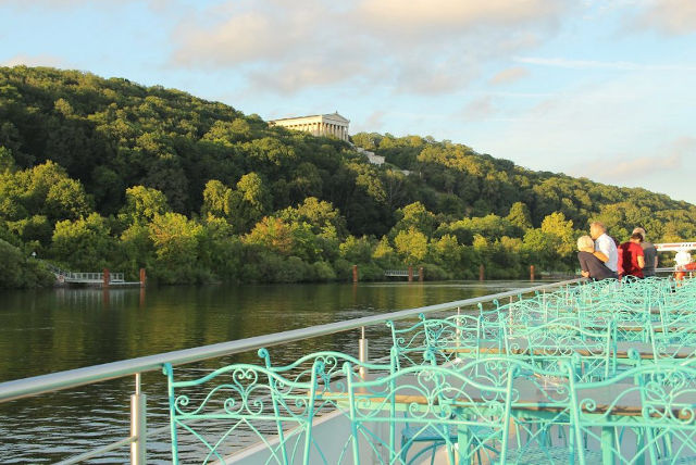 An Bord des Holzschiffs „Siebnerin“ besteht sogar die Möglichkeit, ein Holzfassl der renommierten Brauerei Kneitinger anzuzapfen.