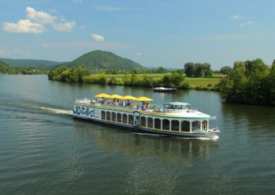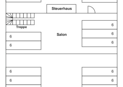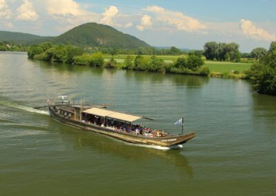 Die „Siebnerin“ verkörpert den Charme vergangener Zeiten und bietet einen außergewöhnlichen Rahmen für sommerliche Feiern unter freiem Himmel. An Bord erwartet Sie ein Ambiente von warmen Holz und nostalgisches Flair. Das offene Deck eignet sich perfekt für exklusive Feiern mit eher kleineren Gruppen. In besonderer Nähe zum Fluss genießen Sie hier den herrlichen Blick auf die umgebende Landschaft und das ganz besondere Fahrgefühl des offenen Holzschiffs.