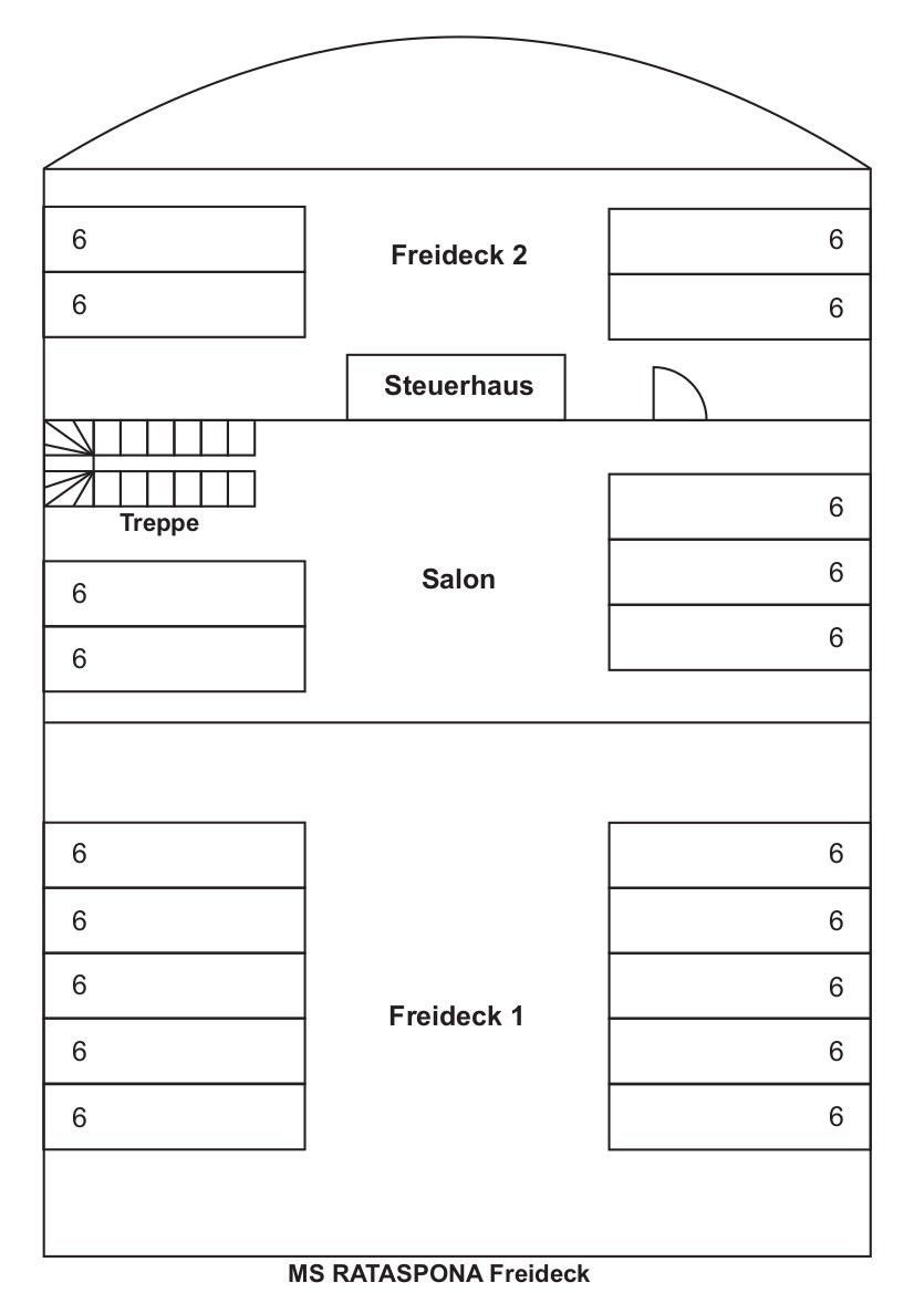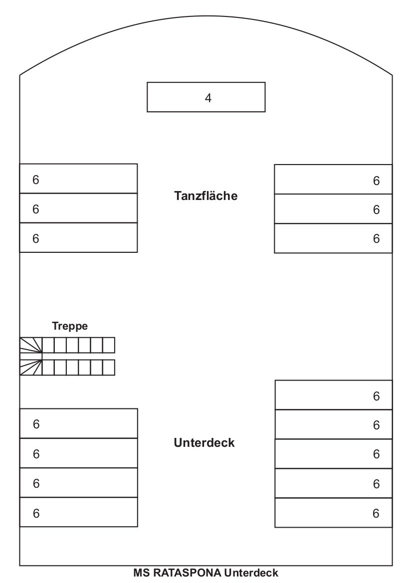 Die „Rataspona“ widerum präsentiert sich stilvoll gediegen. Das Schiff besticht vor allem durch seine gemütliche Inneneinrichtung und die großzügigen Außenbereiche mit zwei Sonnendecks. Die Innenausstattung lässt Raum für kreative Dekorationen und Gestaltungsideen. Auf der „Rataspona“ erleben Sie ein einladendes Flair mit großzügigen Deckflächen, die sich perfekt für Aktivitäten und Unterhaltung eignen. Hier kann die Feierlichkeit ganz nach Ihren individuellen Vorstellungen gestaltet werden.