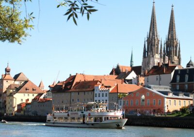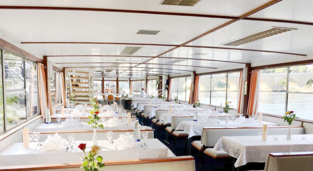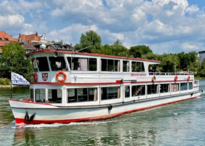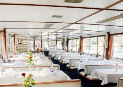 Das Schiff „Johannes Kepler“ hingegen besticht durch seine klassische Architektur mit klaren Linien. Es gehört seit Jahrzehnten fest zum Stadtbild von Regensburg und besticht mit einem gewissen Vintage-Charme. Mit einem Hauch von Nostalgie bietet dieses Schiff vielseitige Gestaltungsmöglichkeiten für kreative und individuelle Feiern. Die verschiedenen Deckbereiche eignen sich ideal für Unterhaltung und Aktivitäten. Die Innenräume sind stilvoll gestaltet und bieten eine entspannte Atmosphäre, die Raum für persönliche Gestaltungsideen lässt. „Johannes Kepler“ ist die perfekte Wahl für Sie, wenn Sie stilvolles Event mit Raum für Ihre persönliche Note bevorzugen.