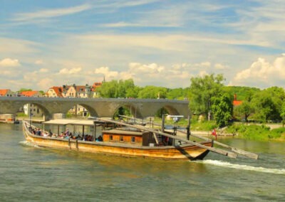 An Bord des Holzschiffs „Siebnerin“ besteht sogar die Möglichkeit, ein Holzfassl der renommierten Brauerei Kneitinger anzuzapfen.