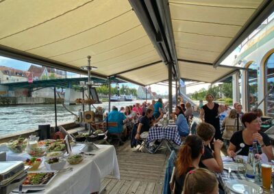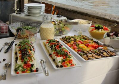 Unsere exklusiven Cateringpartner verwandeln jede Schifffahrt in eine kulinarische Reise, die alle Sinne verzaubert. Unsere Cateringpartner bieten eine beeindruckende Vielfalt von delikaten Köstlichkeiten, von regional inspirierten Spezialitäten bis hin zu internationalen Gaumenfreuden. Von eleganten Empfängen über romantische Abendessen bis hin zu festlichen Feierlichkeiten – unser Catering-Team gestaltet individuelle Menüs, die genau zu Ihren Bedürfnissen passen. Wir laden Sie herzlich ein, an Bord der Personenschifffahrt Klinger eine Welt kulinarischer Genüsse zu entdecken, die perfekt mit der atemberaubenden Landschaft der Region Regensburg harmoniert. Willkommen an Bord und guten Appetit!